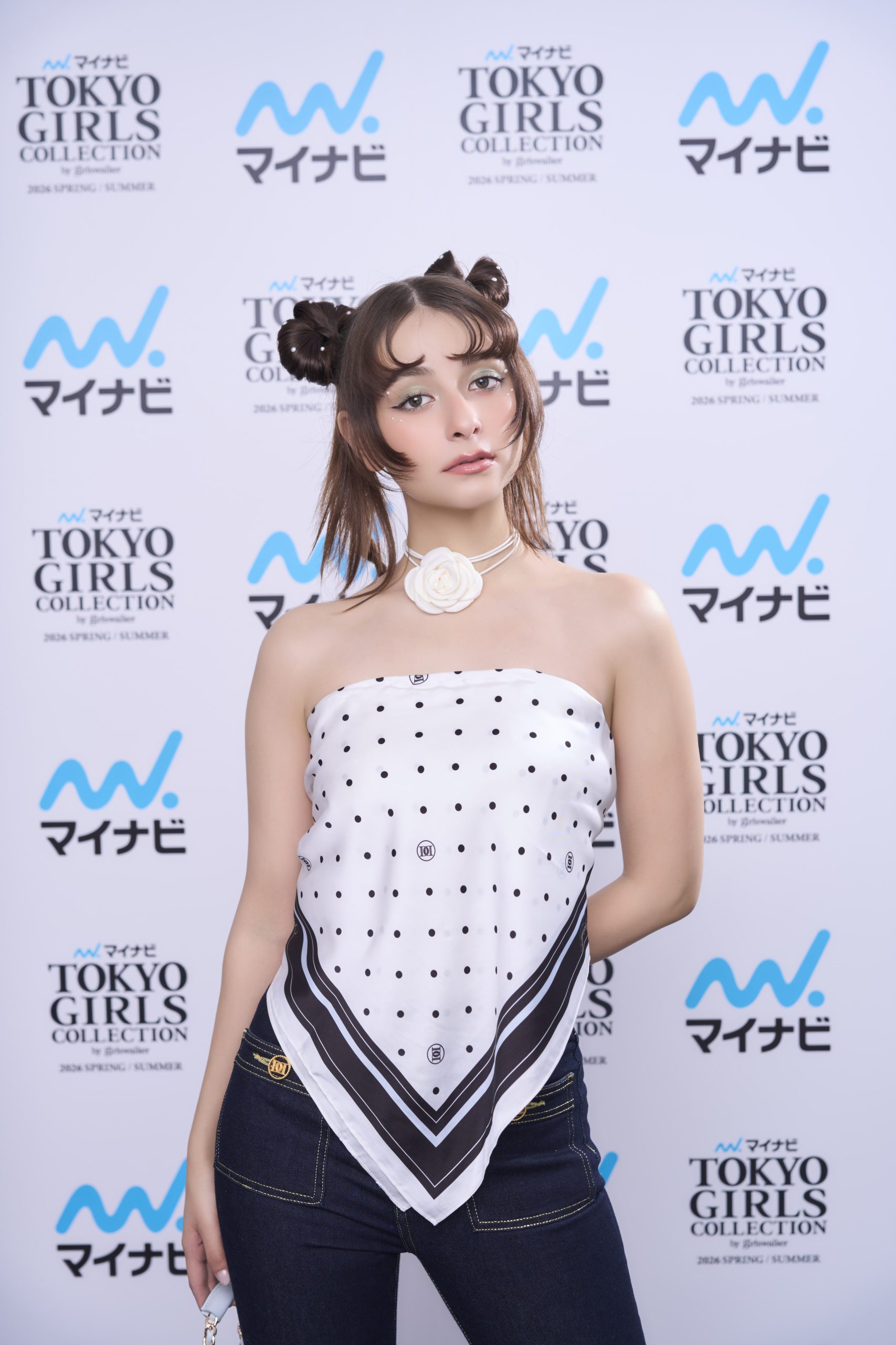 巻いている大きなバンダナが、存在感があってとてもお気に入りです。デコルテも出て綺麗な雰囲気に見せてくれるので、他にも腰に巻いてみたり髪につけてみたり色々なバンダナファッションに挑戦してみたいなと思いました。リボンの形のヘアスタイルも人生で初めてやったのですが、自分ではなかなかできない難しいアレンジなので、挑戦できて嬉しかったです。